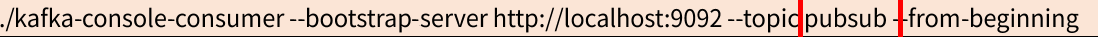 ./kafka-console-consumer --bootstrap-serve http://localhost:9092 --topic pubsub --from-beginning