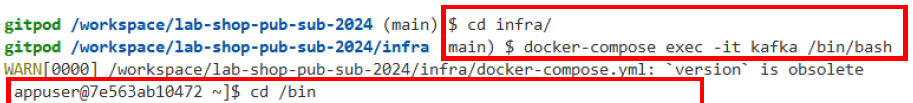 docker-compose exec -it kafka /bin/bash