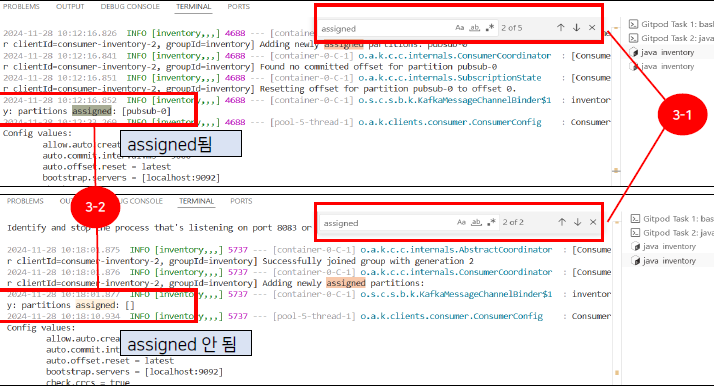두 inventory 서비스에서 Ctrl + f assigned 검색