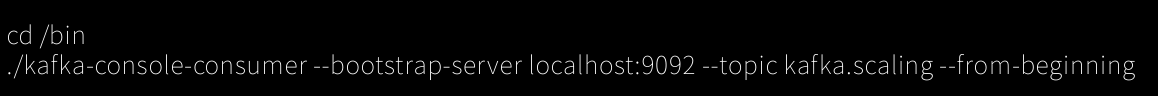 ./kafka-console-consumer --bootstrap-server localhost:9092 --topic kafka.scaling --from-beginning